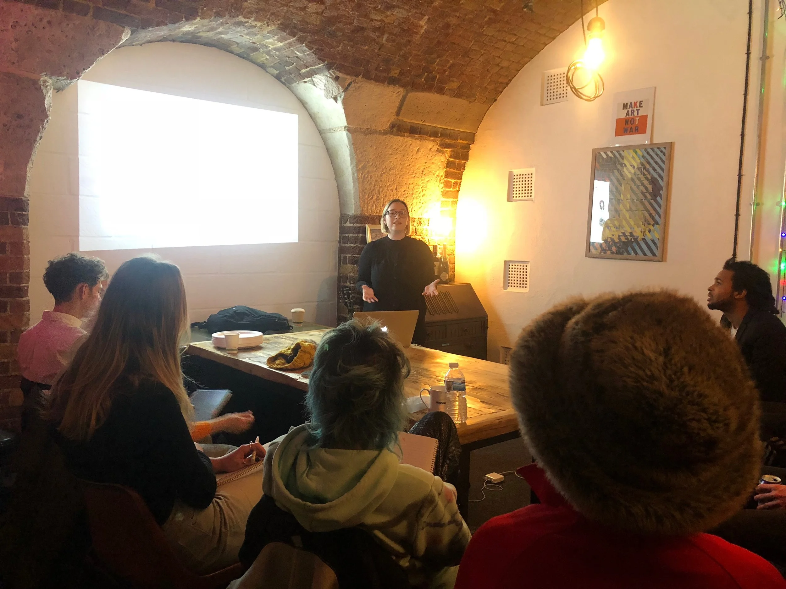 Rachel hosting a workshop for independent musicians at The Rattle.